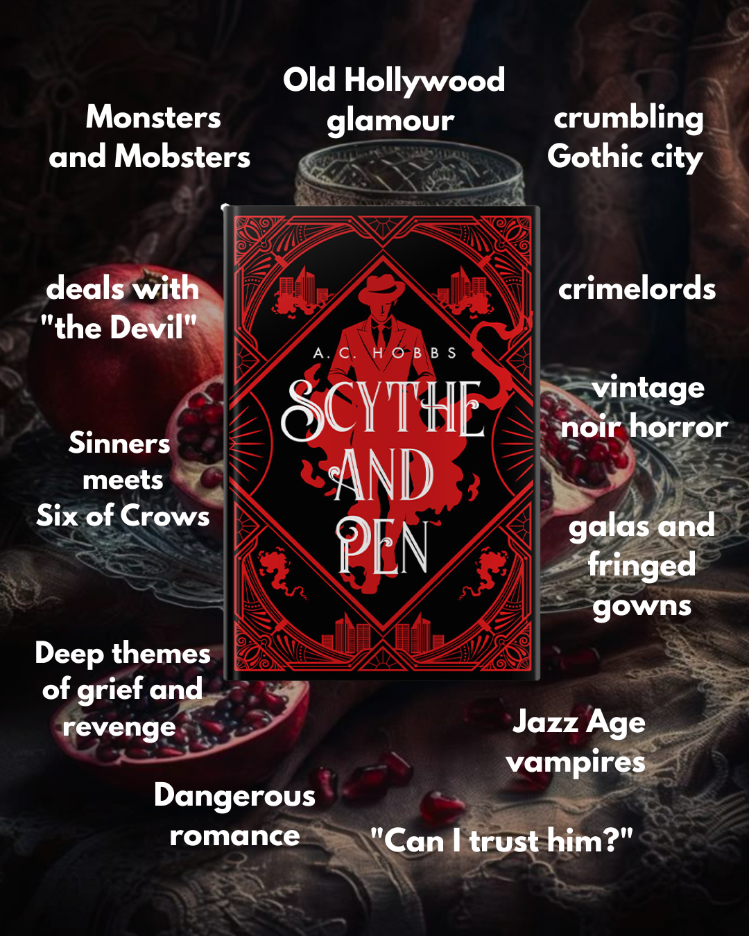 The GRIM EMPIRE TRILOGY presents a horrific twist on the Hades and Persephone legend. Part horror, part fantasy, Scythe and Pen is the first installment in a rip-roaring series that will sink its fangs into your heart and refuse to let go. Readers have compared the story to A Darker Shade of Magic by V.E. Schwab, Six of Crows by Leigh Bardugo, A Forbidden Alchemy by Stacey McEwan, The Gilded Wolves by Roshani Chokshi, Priest of Bones by Peter McClean and the popular BBC series Peaky Blinders.